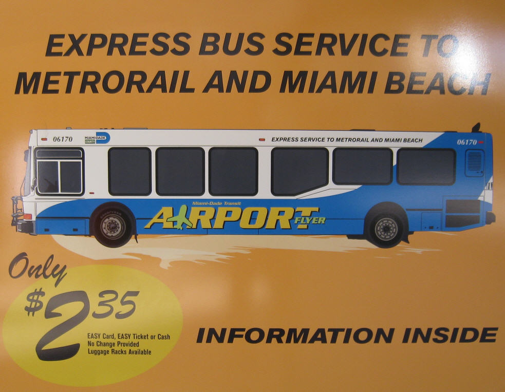 Vom Miami International Airport fährt im 20 Minuten Takt ein direkter Bus nach Miami Beach. Im Bus befindet sich eine Kofferablage, auf der man sein Gepäck ablegen kann.